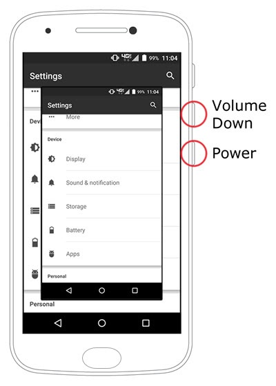 To take a screenshot for Moto E you simply press and hold both the Power and Volume down key simultaneously for about three seconds. Turn Three finger screenshot on. Take a screenshot on the moto e 6.